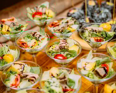 Our menus are flexible and can be tailored to meet your needs and budget. Choose a small appetizer with 6 to 12 bites, or select a menu featuring 15 or more items to serve as a meal replacement.